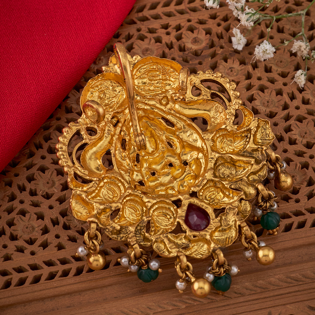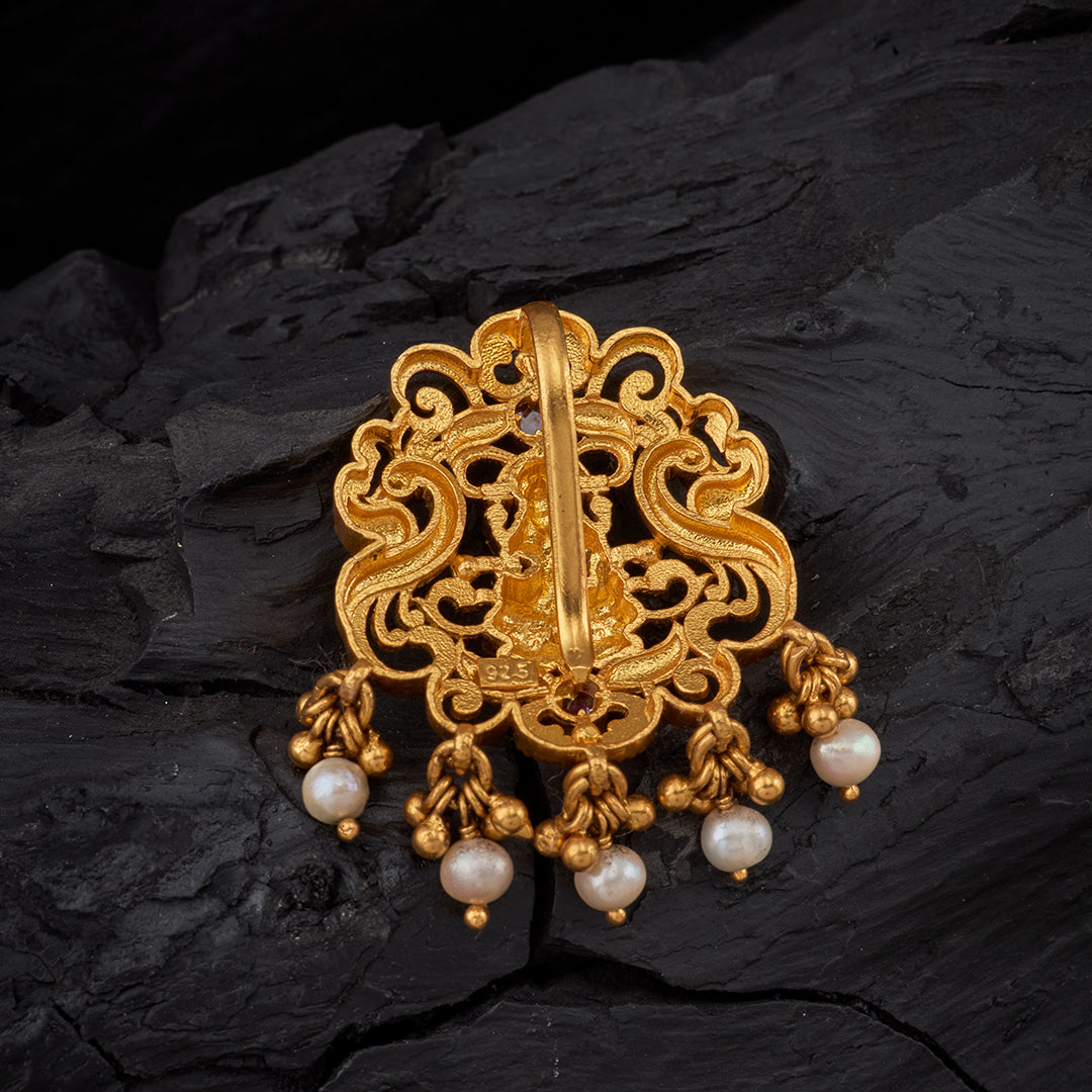 GANESHA TEMPLE PENDANT WITH PEARLS