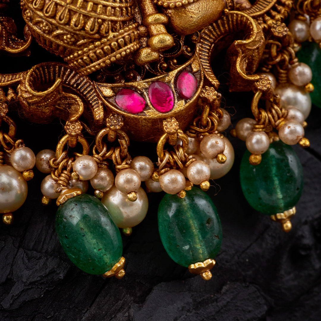 LAKSHMI GREEN KEMP TEMPLE PENDANT