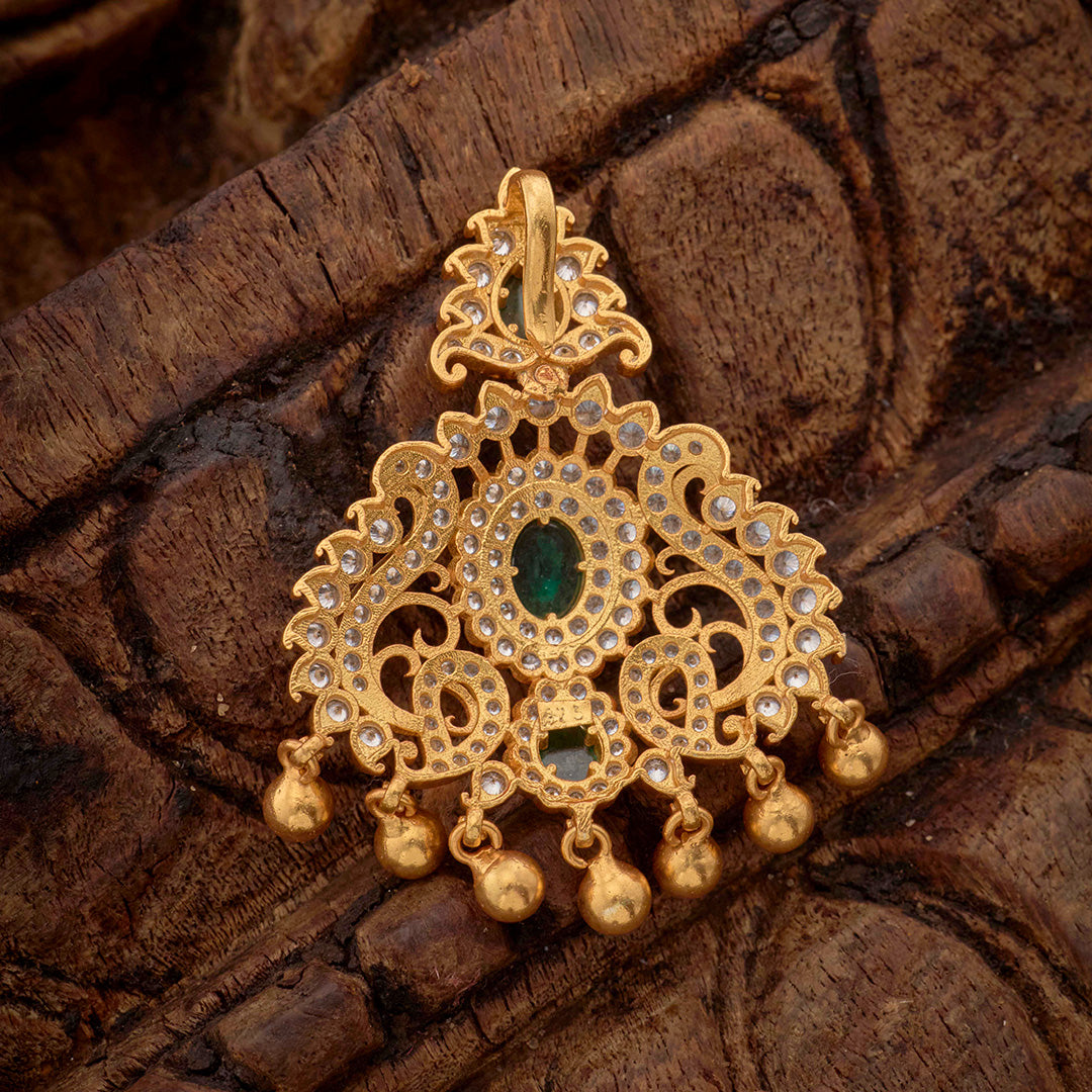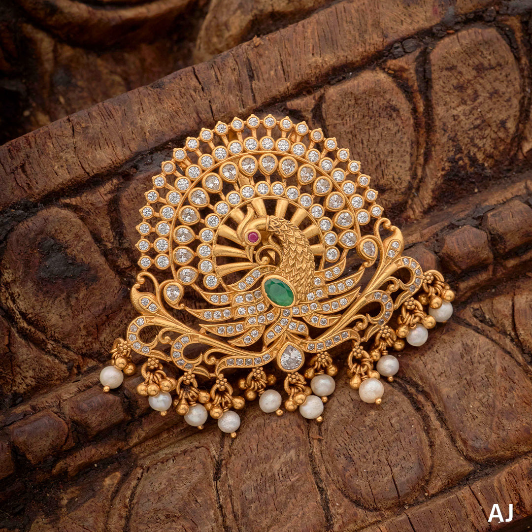 STONE STUDDED PEACOCK PENDANT.